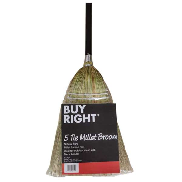 Experience the efficiency of natural cleaning with the Buy Right 5 Tie Millet Broom. This broom is perfect for outdoor duties, featuring bristles made from a natural millet and cane mix, ensuring reliability and durability. The bristles are securely held together by 5 ties, and the broom is equipped with a metal handle that offers a strong yet comfortable grip. Whether you're sweeping the garden, driveways, or patios, this broom is designed to handle heavy-duty tasks with ease.