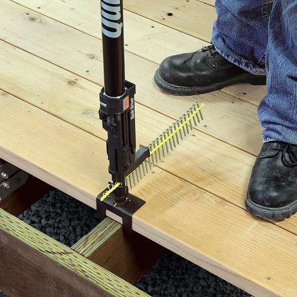 The PRO250 Quik Drive® Auto-Feed Screw Driving System is an exceptional tool designed for a variety of applications including underlay, subfloor, sheathing, and decking. It is engineered to drive 40mm – 65mm (8 – 10 gauge*) screws, making it a versatile choice for numerous tasks. The system features a precision countersink adjustment that ensures consistent screw depth, and its auto-feed mechanism allows for fast, hassle-free driving on the jobsite. *Note: The 12g Deck-Drive™ DHSD HARDWOOD Screw is an exception.