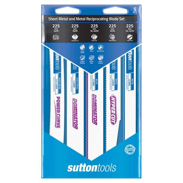 The 5 piece set is meticulously crafted from Cobalt Bi-Metal HSS, ensuring superior performance for metal cutting applications. This specially selected blade set is ideal for cutting through steel, aluminum, copper, brass sheets, or pipes, and is also effective for wood and nails. The use of Cobalt Bi-Metal HSS provides exceptional flexibility, heat resistance, and break-resistance, making these blades a reliable choice for demanding tasks.